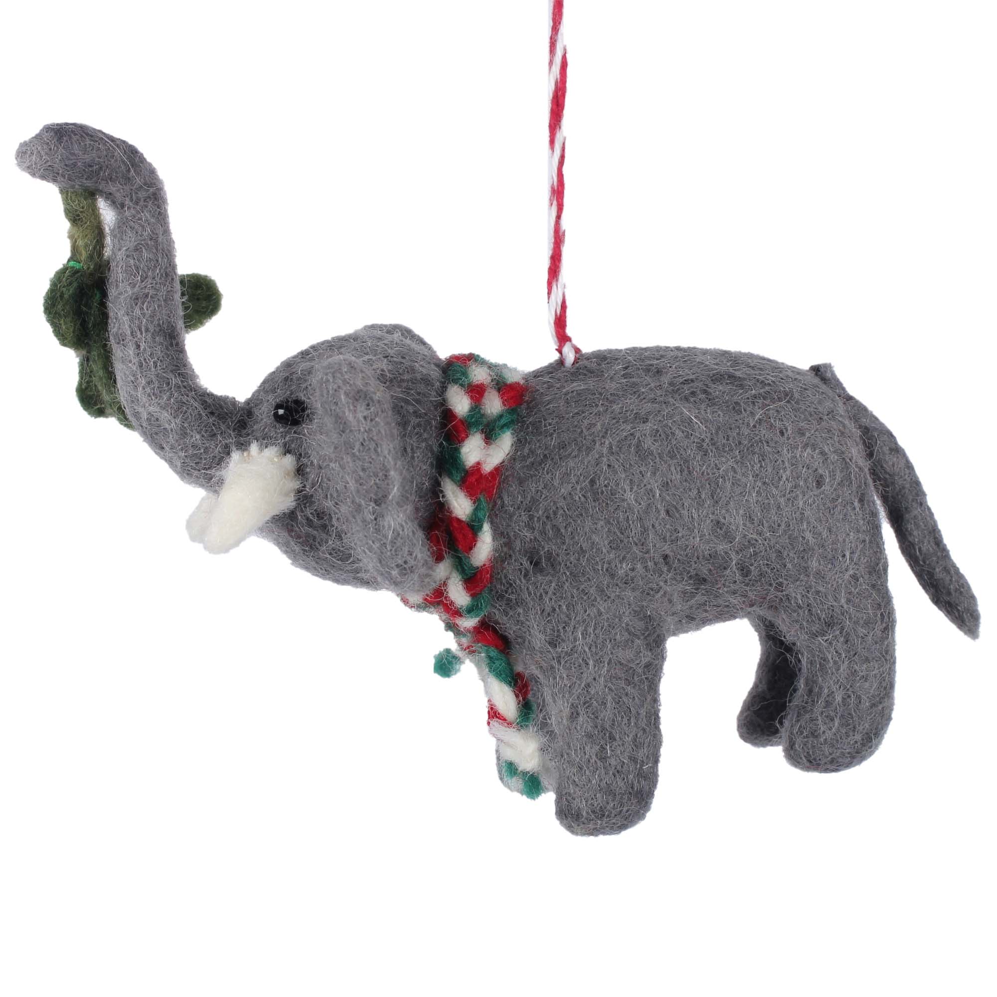 Elephant and Misletoe Felt Christmas Ornament