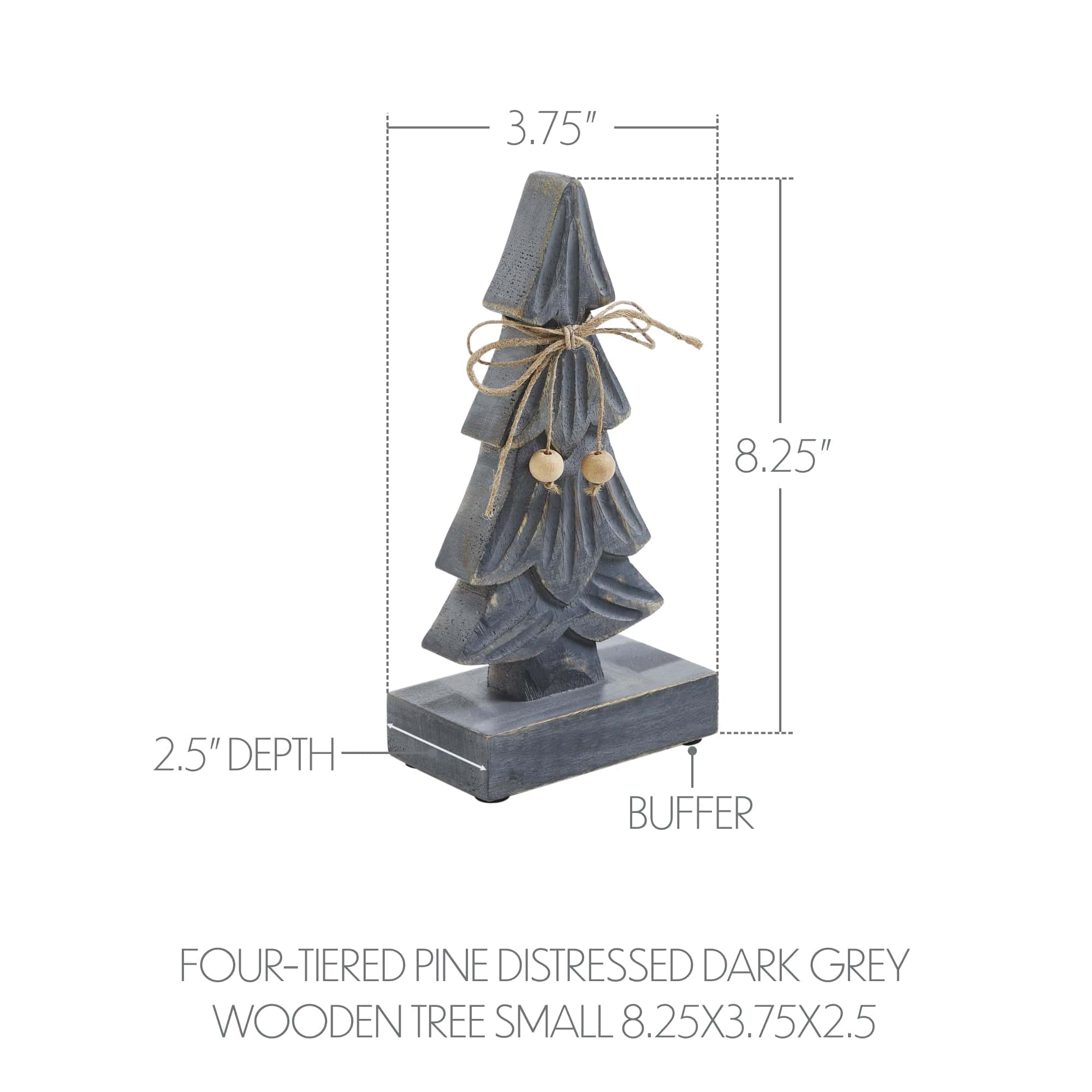 Four-Tiered Pine Distressed Dark Grey Wooden Tree Small 8.25x3.75x2.5