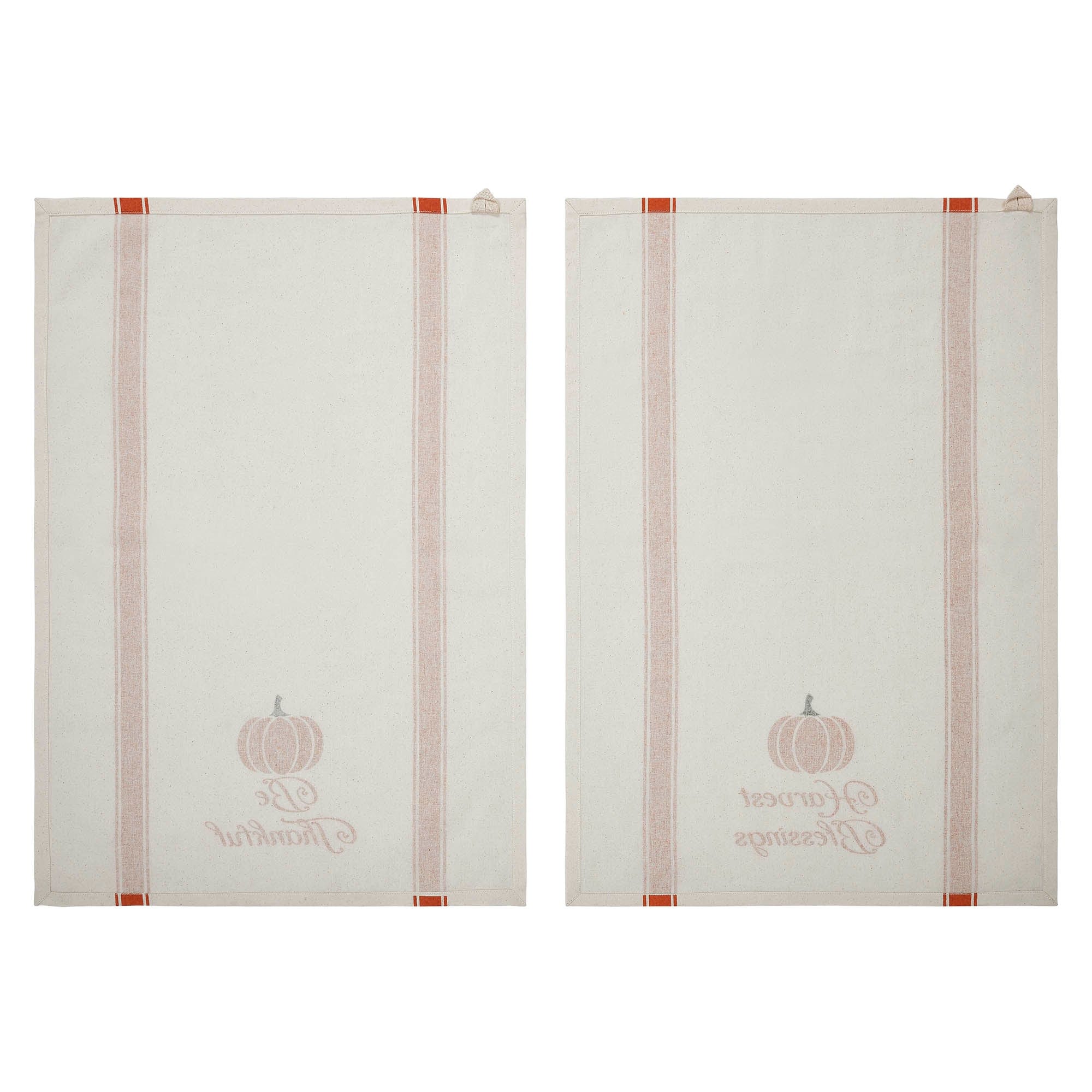 Harvest Blessings Pumpkin Tea Towel Set of 2 19x28