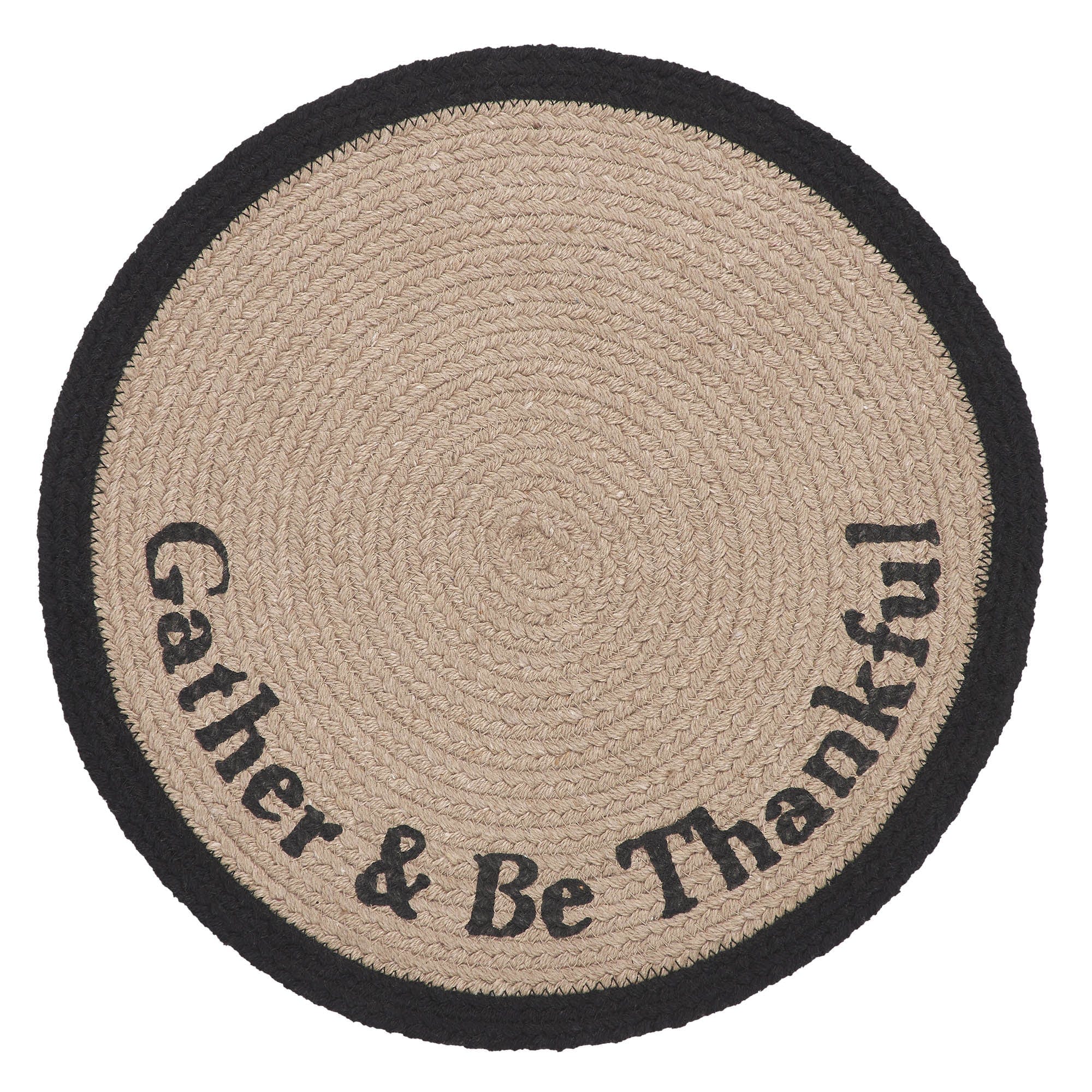 - Introducing the VHC Brands Braided Cotton Harvest Blessings Stencil Gather & Be Thankful Placemat, a delightful addition to your fall and Thanksgiving table decor, featuring a 14-inch diameter for versatile placement and festive charm.