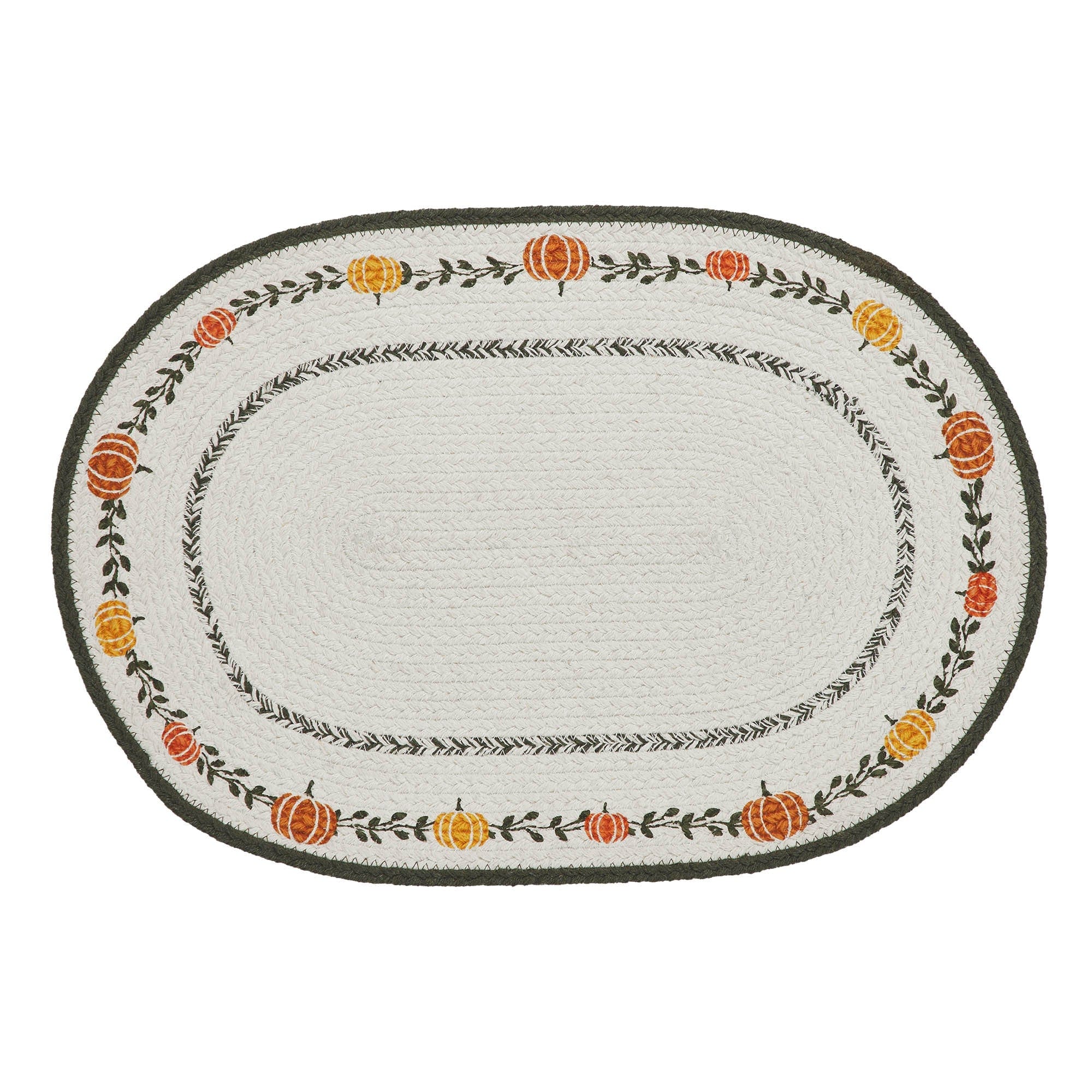 - Presenting the VHC Brands Braided Cotton Pumpkin Bounty Oval Placemat Stencil, sized at 13x19 inches, an ideal addition to your fall and Thanksgiving table decor, infusing warmth and charm into your dining space.