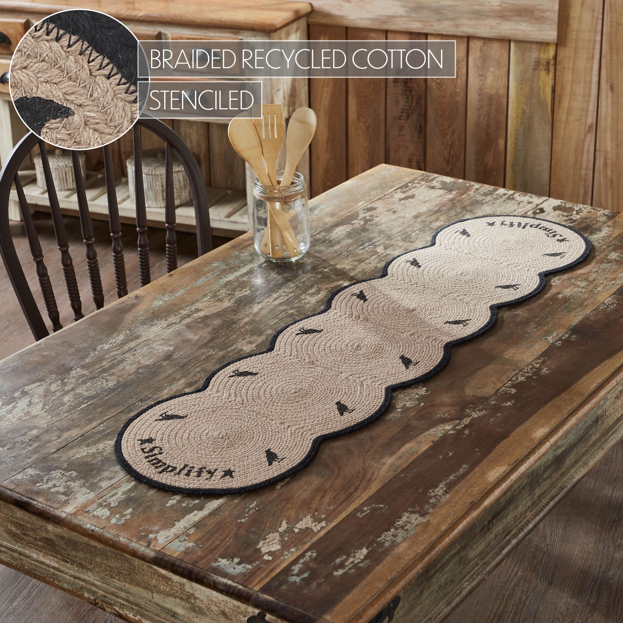 - Crafted from a durable blend of braided cotton, this oval-shaped table runner features a charming stencil design of primitive ravens and stars along with the word Simplify adding rustic elegance to your fall and Thanksgiving table decor.