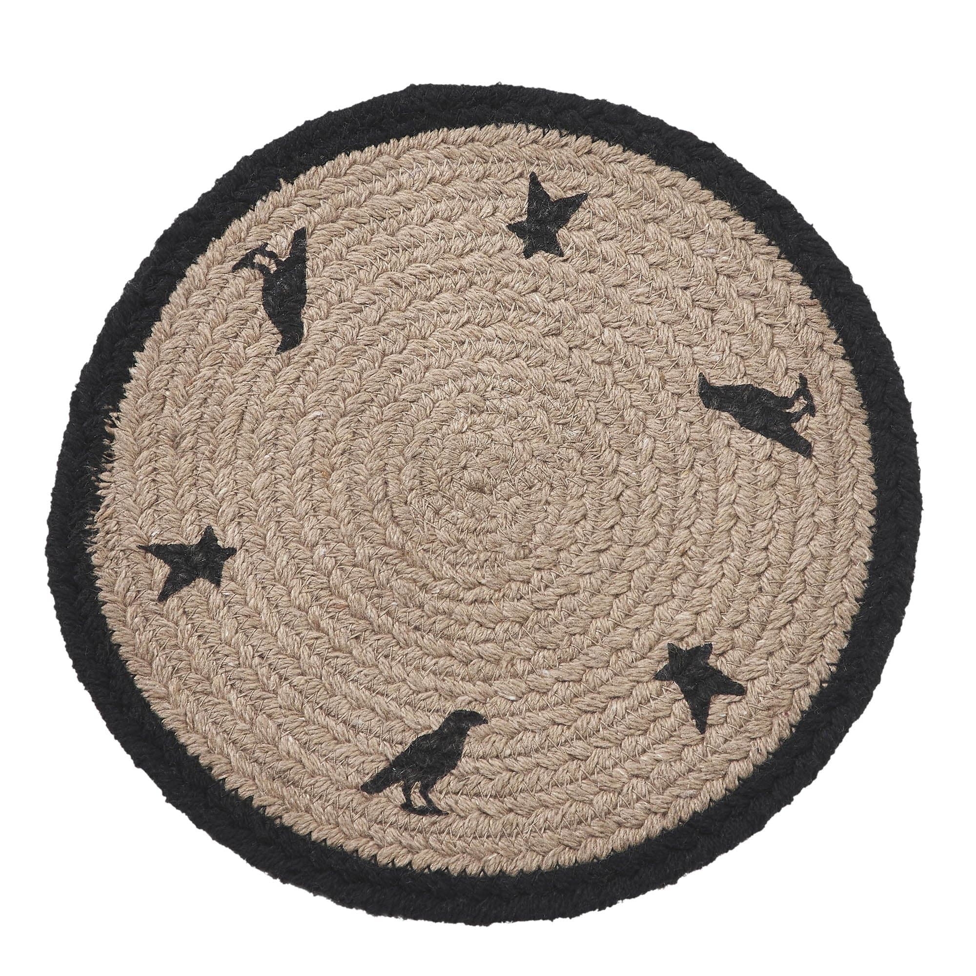 - Designed with a primitive and rustic sensibility, this round trivet features a graphic print of primitive ravens and stars, adding a touch of vintage charm to your kitchen table decor.