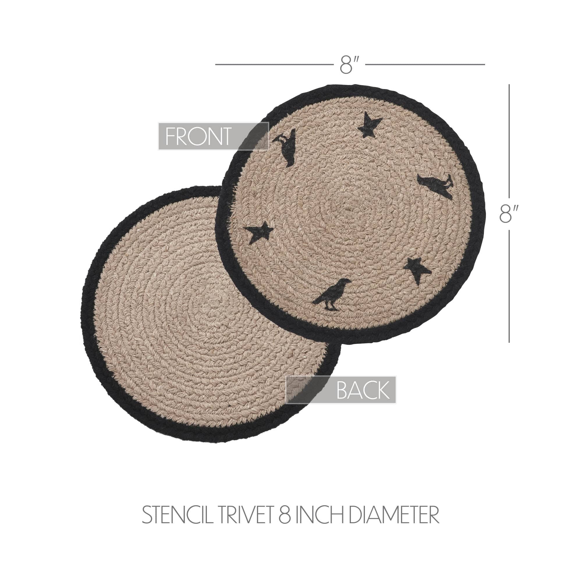 - Presenting the VHC Brands Braided Cotton Raven Harvest Stencil Trivet, a charming addition to your fall and Thanksgiving kitchen decor, featuring a classic 8-inch diameter ideal for use as a pot holder or hot pad.