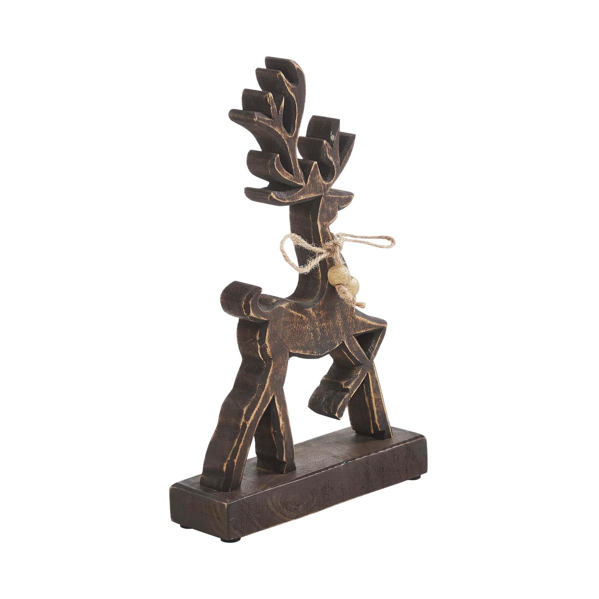 - Vintage Dark Brown Wooden Design: Features a beautifully carved vintage-style reindeer with its head held high in dark brown, adding a rustic and primitive touch to your Christmas and winter decor.