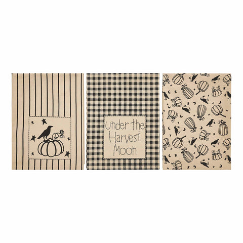 Liven up your kitchen this fall with the perfect blend of fun and functional. The Raven Harvest Tea Towel set includes three tea towels measuring 19x28 inches each. The 100 percent cotton kitchen towels feature a mix of patterns including stripes, checks and a delightful fall motif including pumpkins and crows. The checkered tea towel includes word art reading, Under...