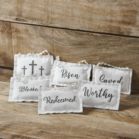 Introducing the VHC Brands Risen Ornament Bowl Filler Set, a farmhouse-inspired addition to your country-themed decor. This set features six 3x5-inch decorative and inspirational ornaments, perfect for adding a touch of soft white elegance to your bedroom, living room, and dining room decor. Crafted from high-quality textured cotton, these ornaments seamlessly blend with the Risen Collection, making them an ideal...