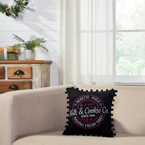 Add a little pop of festive style with this Christmas accent pillow. The Annie Black Check Milk and Cookies Pillow measures 12 by 12 inches. The filled pillow features word art reading, Milk & Cookie Co. for a charming farmhouse look with seasonal flair. A bold red accent creates a vintage logo look with small printed accents within. The cozy...