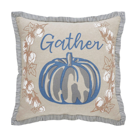 Add a vintage feel to your home and complement your Fall farmhouse decor with this decorative pillow featuring stenciled word art Gather with pumpkin and cotton sprigs border. Features Premium Quality & Construction - Our Ashmont Fall Throw Pillows are expertly crafted with 100% cotton; Textured chambray material, a ticking-stripe flanged edge adds farmhouse charm to any room. Fall Farmhouse...