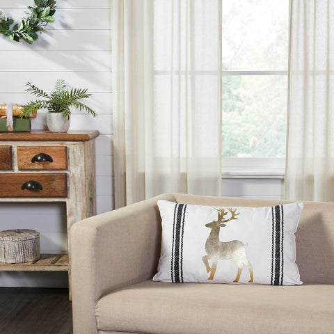 Add a little pop of festive style with this Christmas accent pillow. The Annie Black Check Santa Sleigh Pillow measures 14 by 22 inches. The filled pillow features a charming distressed print for a vintage feel. A bold classic red sleigh and reindeer design creates a focal point that is supported by a background of soft white snowflakes. The cozy...