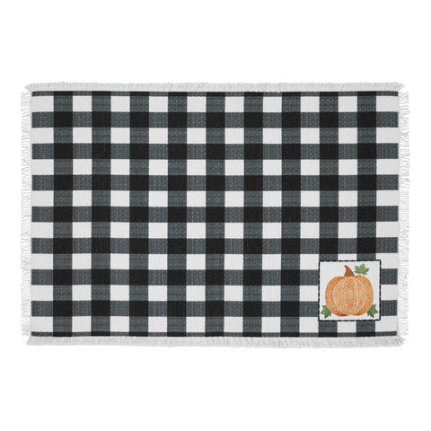 Create the perfect table settings with a country casual feel accented with subtle fall flair. The Annie Black Check Pumpkin Placemat Set includes two placemats measuring 13x19 inches each. The table place settings features buffalo check fabric with a classic burnt orange pumpkin design in the lower right corner of each mat. Hand wash only Features Fall Placemat Set -...
