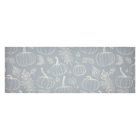 Give your tabletop decor a seasonal upgrade with modern colors and a classic Thanksgiving motif. The Silhouette Pumpkin Grey Runner measures 12 by 36 inches and features a dark grey base in recycled plastic (PET) material. The Thanksgiving table runner features a whimsical pattern with ivory pumpkins, leaves and acorns. Pair with other pieces from the Silhouette Pumpkin Grey Collection...