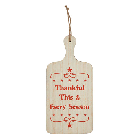 Elevate your Thanksgiving table decor with the heartfelt message of gratitude embodied in the VHC Brands Thankful This & Every Season MDF Cutting Board Sign. Measuring 18x8.5 inches, this rectangular tabletop decoration features the words Thankful This & Every Season printed on a rustic MDF board. The cloud creme background and burnt orange lettering evoke a warm and inviting ambiance,...
