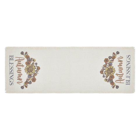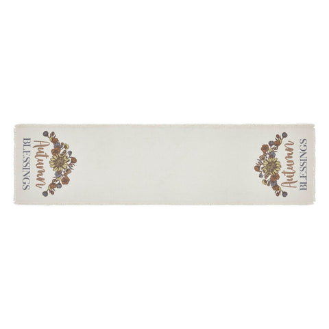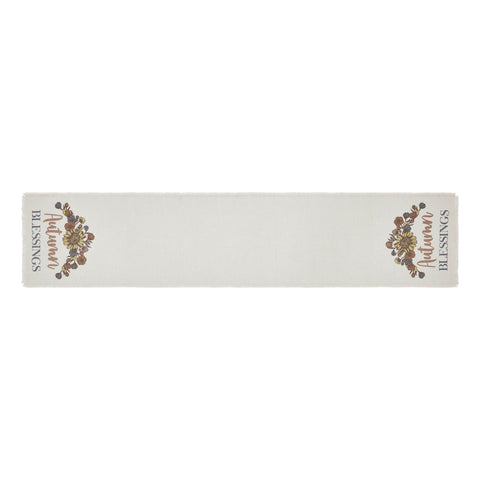 Give your tabletop decor a seasonal upgrade with vintage colors and a classic Thanksgiving design. The Bountifall Autumn Blessings Runner measures 12 by 60 inches and features a creme base in recycled plastic material with fringed edging. The Thanksgiving table runner features a vintage-inspired floral pattern with word art reading, Autumn Blessings. Hand wash and lay flat to dry. Pair...
