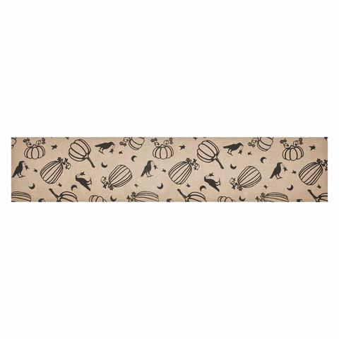 Give your tabletop decor a seasonal upgrade with rustic burlap and a primitive fall design. The Raven Harvest Burlap Jute Runner measures 12 by 48 inches and features a woven burlap base in natural tan. The textured Thanksgiving table runner features a whimsical pattern with stenciled black pumpkins, crows, stars and crescent moons. Hand wash and lay flat to dry....