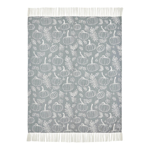 Modern warm grey meets a traditional pumpkin print for updated fall style. The Silhouette Pumpkin Throw measures 50x60 inches and features a deep grey base accented by a charming pattern of pumpkins, acorns and leaves in soft cream. Cream tassels add a finishing touch at each end of the throw blanket. Sling on the back of a chair or sofa...