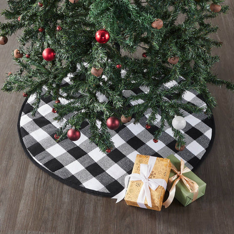 Add modern style to your Christmas traditions with the Annie Black Check Tree Skirt. The round tree skirt features a 48 inch diameter. A crisp white base with wide country black checked stripes will add simple, sophisticated style for a perfect farmhouse Christmas look. The elegant Christmas tree skirt is made for yearly use with a cotton polyester base with...