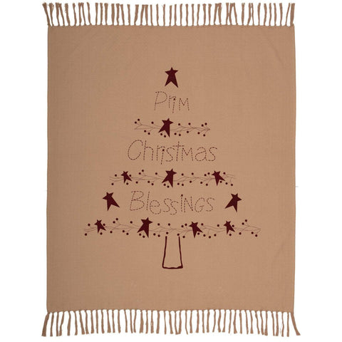 Complete your rustic holiday look with a touch of warmth and comfort. The Prim Christmas Blessings Woven Throw fills your home with sentimental detail and primitive charm, featuring the words "Prim Christmas Blessings" stenciled in the center surrounded by pip berries and country stars all in the shape of a Christmas tree in burgundy. This holiday throw has a solid...