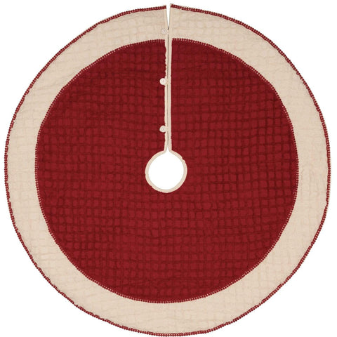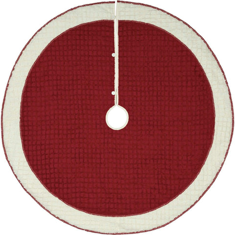 Celebrate Christmas this year with the charming Chenille Christmas Tree Skirt under your tree. Featuring a stunning chenille canvas in red and white beautifully designed in a flocking technique for added texture and unique presentation. The inner circle and outer edge of this holiday tree skirt is finished with a pom pom lace to create a trendy, classic Christmas look...