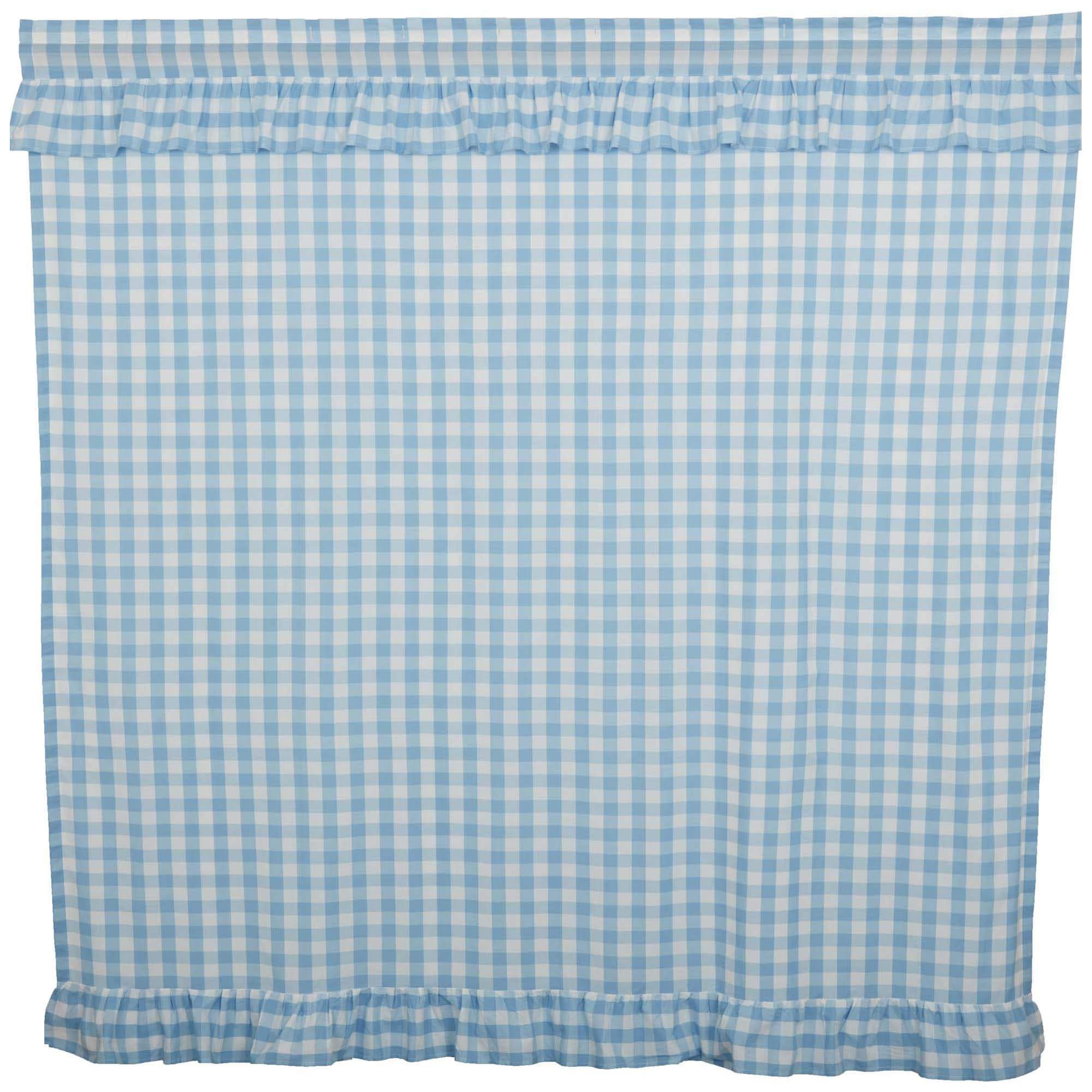 Capture the essence of relaxed, cozy cottage charm in your washroom with our Annie Blue Buffalo Check Ruffle Shower Curtain 72x72. Classic buffalo check in dusk blue and soft white grace this decorative curtain finished with a delicate ruffle at the top and bottom for a touch of elegance. Easily hang this bath curtain with shower hooks of your choosing (not included) using the button holes attached. A 3" rod pocket is also available as an alternative hanging method.