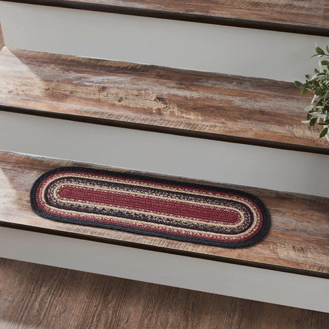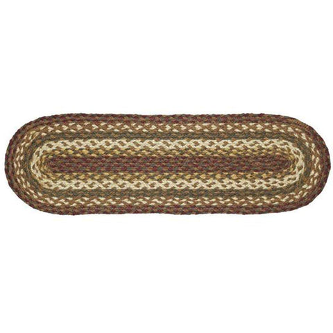 Enhance your stairway with the Cider Mill Jute Stair Tread Oval Latex. Featuring concentric, mixed braids of burgundy, tan, black, and olive green for a classic country, primitive look. Contains machine stitching that holds the braiding together even with increased wear and tear. Reverses to latex spray backing to prevent slippage.Features PREMIUM CONSTRUCTION: with over two decades experience crafting goods...