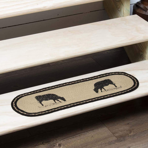 Our Sawyer Mill Collection is trending and so easy to see why!  With its farmhouse vintage style of ticking, stenciling and patchworks, decorating has never been easier to mix and match! *****The oval Sawyer Mill Charcoal Cow Jute Stair Tread brings a Farmhouse look to your staircase. A farm cow is stenciled in distressed black on each end over beautiful solid...