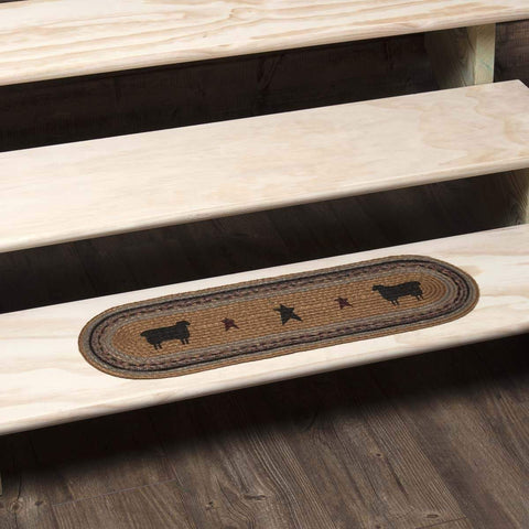 The Heritage Farms Sheep Jute Stair Tread Oval lifts its colors from the bedding set to complete a quietly primitive look throughout the entire house. Sheep stenciling bookending primitive stars adds a homey flair to this stair tread.Features PREMIUM CONSTRUCTION: with over two decades experience crafting goods for American homes, our item are built to last for years to come....