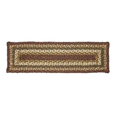 Enhance your stairway with the Cider Mill Jute Stair Tread Rectangle Latex. Featuring concentric, mixed braids of burgundy, tan, black, and olive green for a classic country, primitive look. Contains machine stitching that holds the braiding together even with increased wear and tear. Reverses to latex spray backing to prevent slippage.Features PREMIUM CONSTRUCTION: with over two decades experience crafting goods...