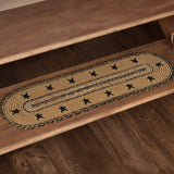 Decorate your stairs with the primitive Kettle Grove Jute Stair Tread Latex 8.5x27. Featuring alternating braids in black, warm creme and soft caramel brown. Reverses to latex spray backing to prevent slippage.