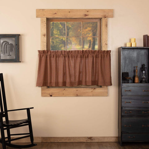 The Primitive Check Swag Set adds a darker rural look to any window with its large scale burgundy, mustard, and black check fabric all cotton. The set is lined in all white cotton.Features PREMIUM CONSTRUCTION: with over two decades experience crafting goods for American homes, our item are built to last for years to come. PRIMITIVE DECOR: traditional style that...