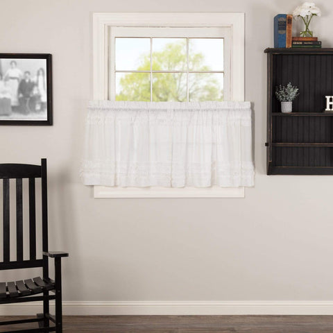 The White Ruffled Sheer Tier Set of 2 L24xW37 brings an updated sensibility to farmhouse decor. Expertly crafted of dense and lightweight cambric fabric for a pleasing drape. Farmhouse ruffles complement for an heirloom look.Features PREMIUM CONSTRUCTION: with over two decades experience crafting goods for American homes, our item are built to last for years to come. FARMHOUSE DECOR: fits...