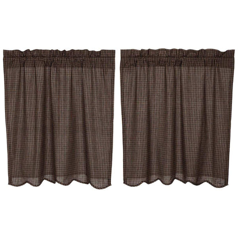 Bring a primitive look to any window with the L24xW36 Kettle Grove Plaid Tier Scalloped Lined Set with its black and tan micro check fabric.Features PREMIUM CONSTRUCTION: with over two decades experience crafting goods for American homes, our item are built to last for years to come. PRIMITIVE DECOR: traditional style that compliments any primitive or Americana home. QUALITY MATERIAL:...