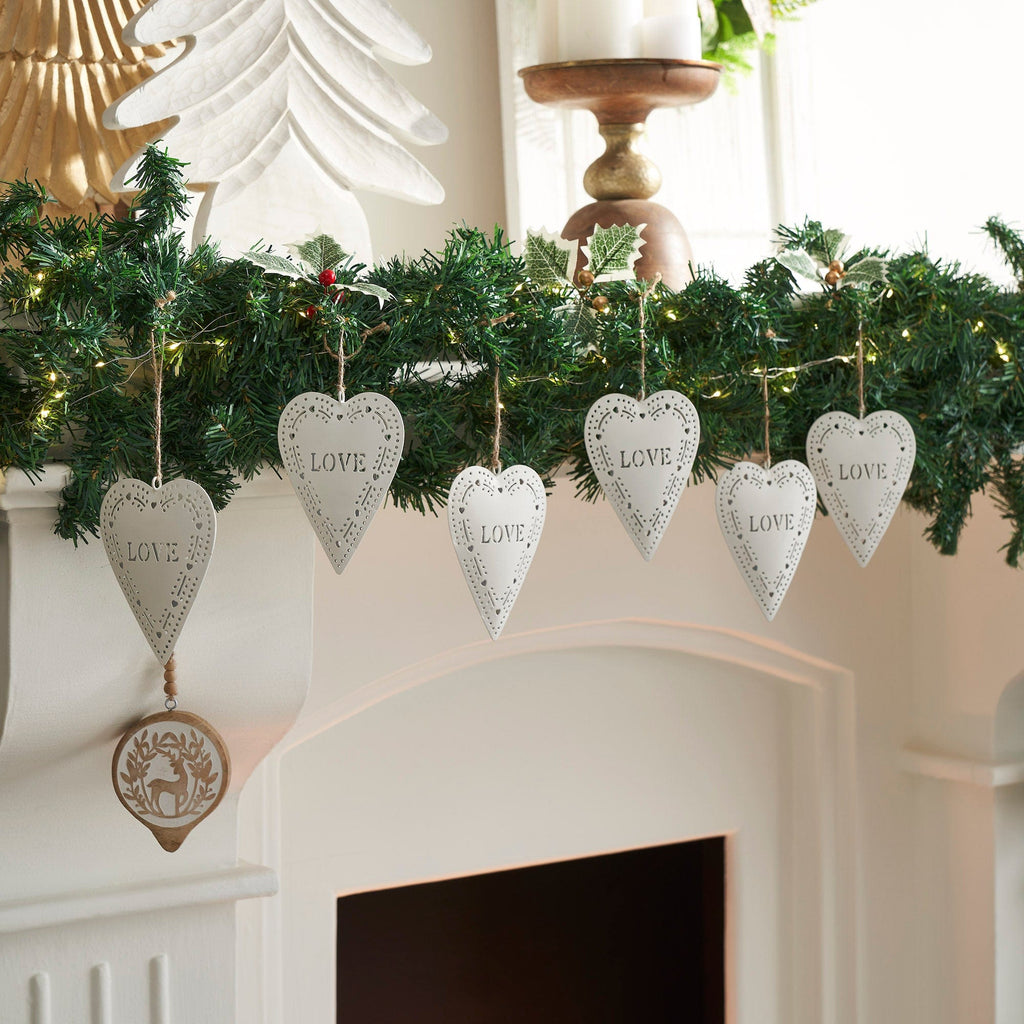 - Charming Heart Design: Features heart-shaped white ornaments with a Love die-cut and a vine heart design along the outer edge, adding a sweet, rustic touch to your Christmas and winter decor.