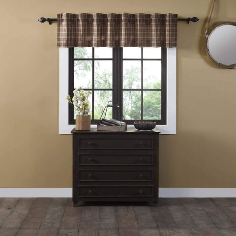 Bring log cabin charm into the home with the Cumberland Valance Lined 16x72. Chili pepper reds and caviar blacks make this collection a woodcutter's dream.Features PREMIUM CONSTRUCTION: with over two decades experience crafting goods for American homes, our item are built to last for years to come. RUSTIC DECOR: cabin style to fit any lodge, cabin, lake house, or retreat....