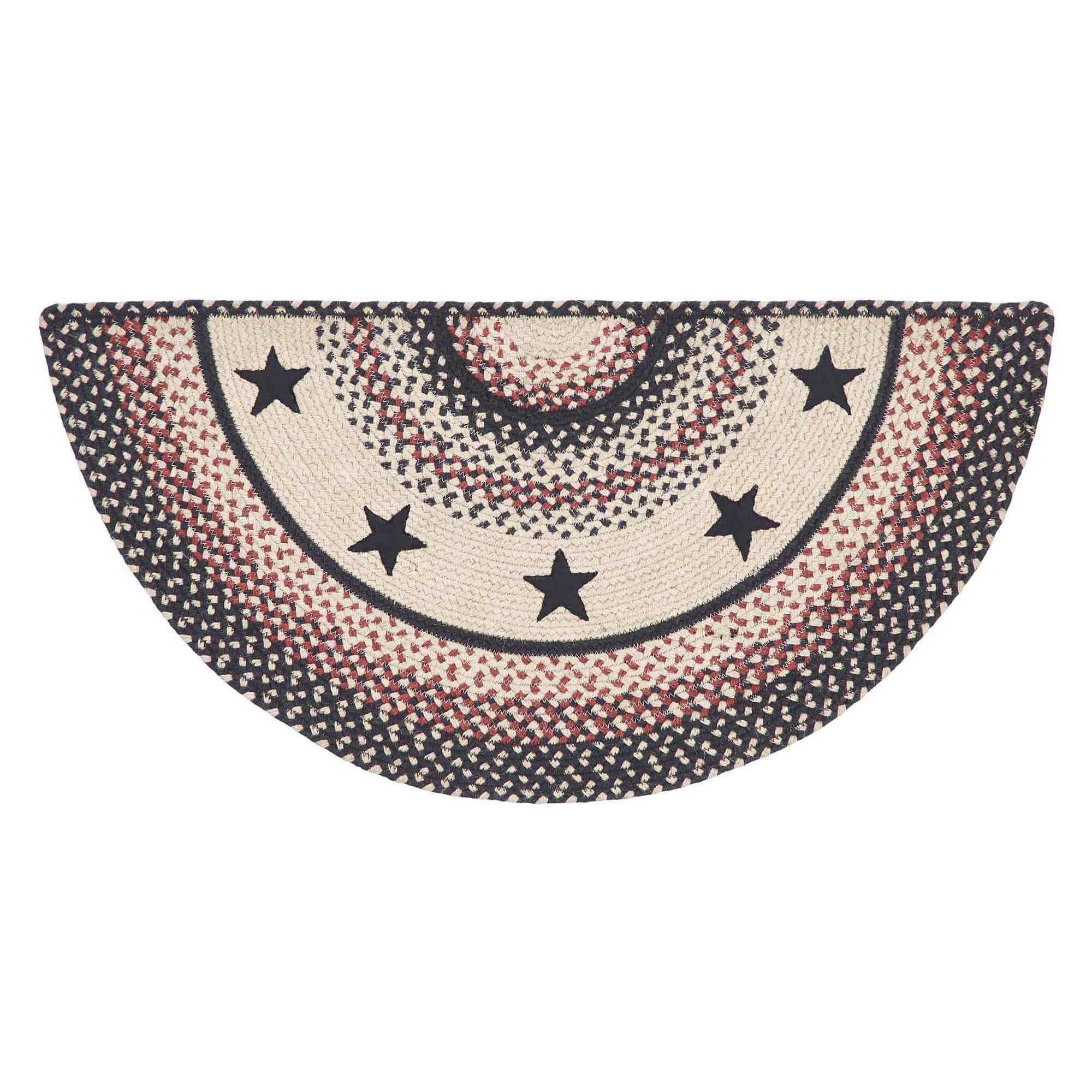 - SIMPLE STYLE Our half circle jute rug features a primitive farmhouse style featuring natural tan, country black, bright red and colonial star appliques that is an understated complement to any home.