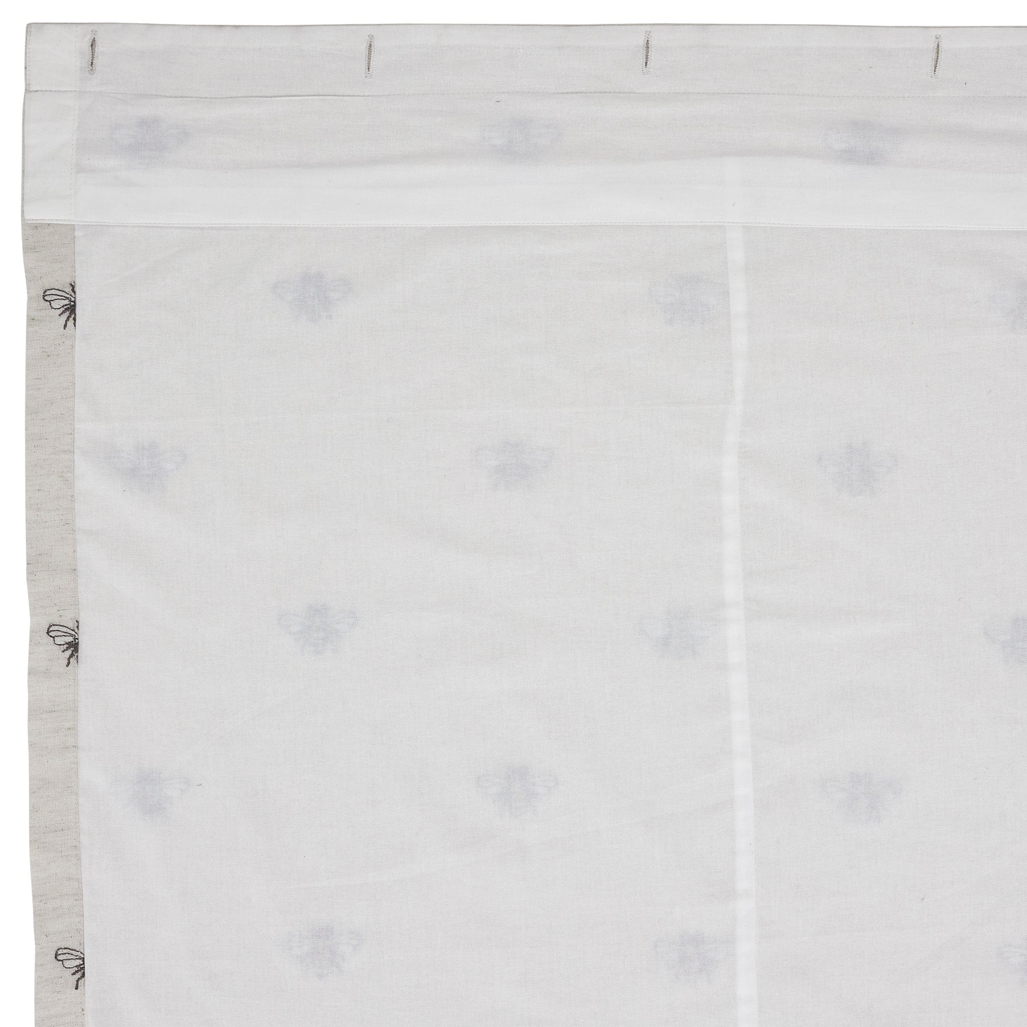 Our 72x72 inch Embroidered Bee Shower Curtain features natural creme cotton flax with bee embroidery in soft yellow and charcoal gray. Button holes are located near the top of the shower curtain for easy hanging.