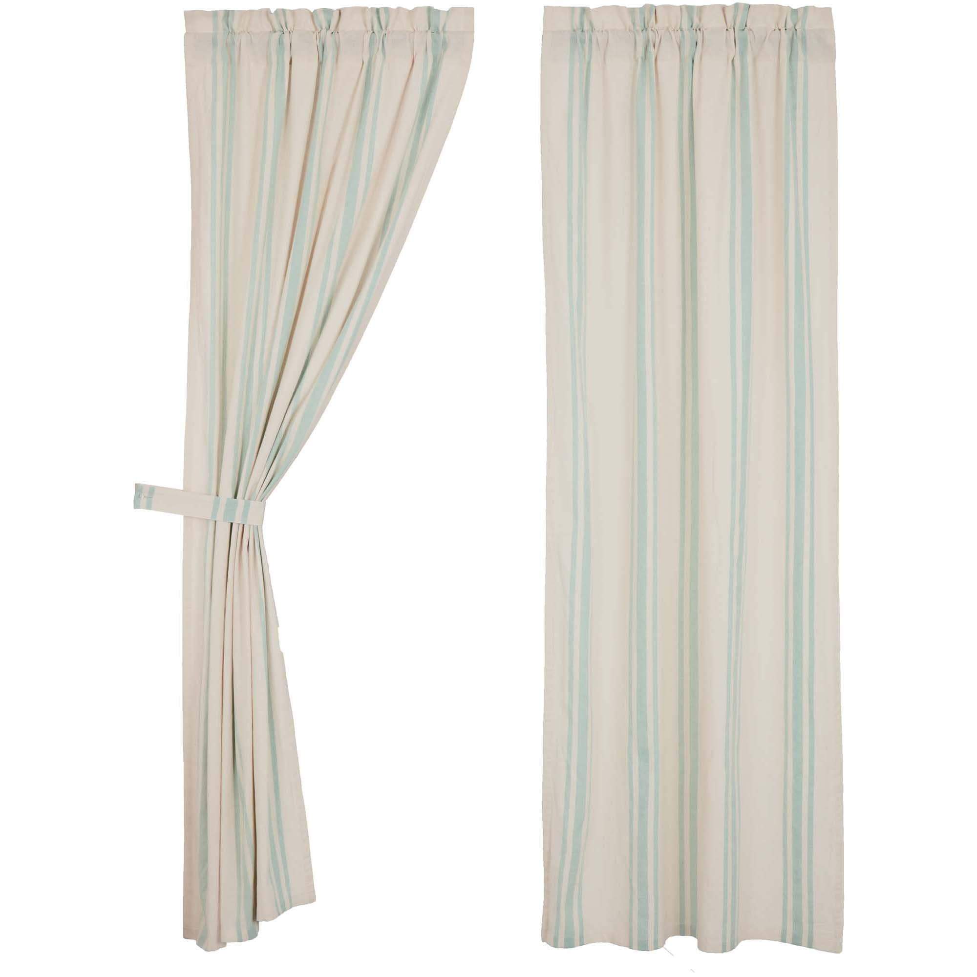 Classic and timeless, our Grain Sack Aqua Panel Set 84x40 helps bring your cozy sea-inspired vision to life. Perfect for any season, these textured cotton chambray curtains feature a creme base with aqua grain sack stripes. This refreshing window treatment coordinates well with our Avani Sea Glass bedding collection for a complete look in your vintage or boho farmhouse-style bedroom. Give your curtains a simple refresh and let in natural light with our matching cloth tie-backs included.