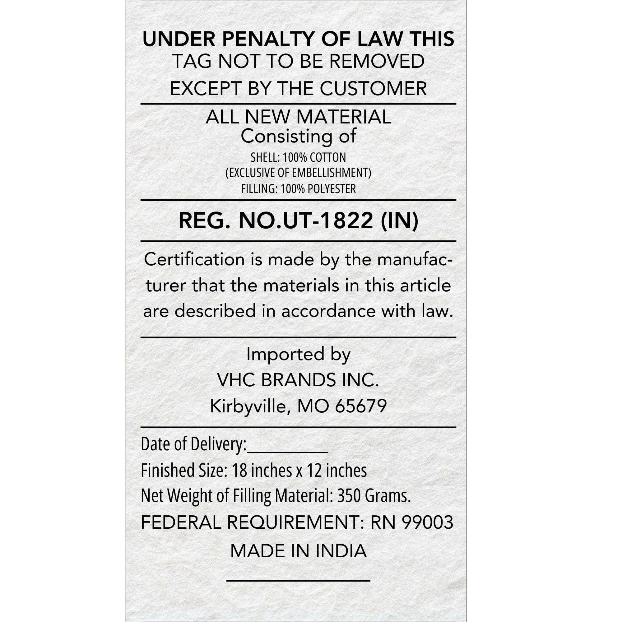 - Material: 100% Cotton Shell, Polyester Lining, Polyester Pillow Fill