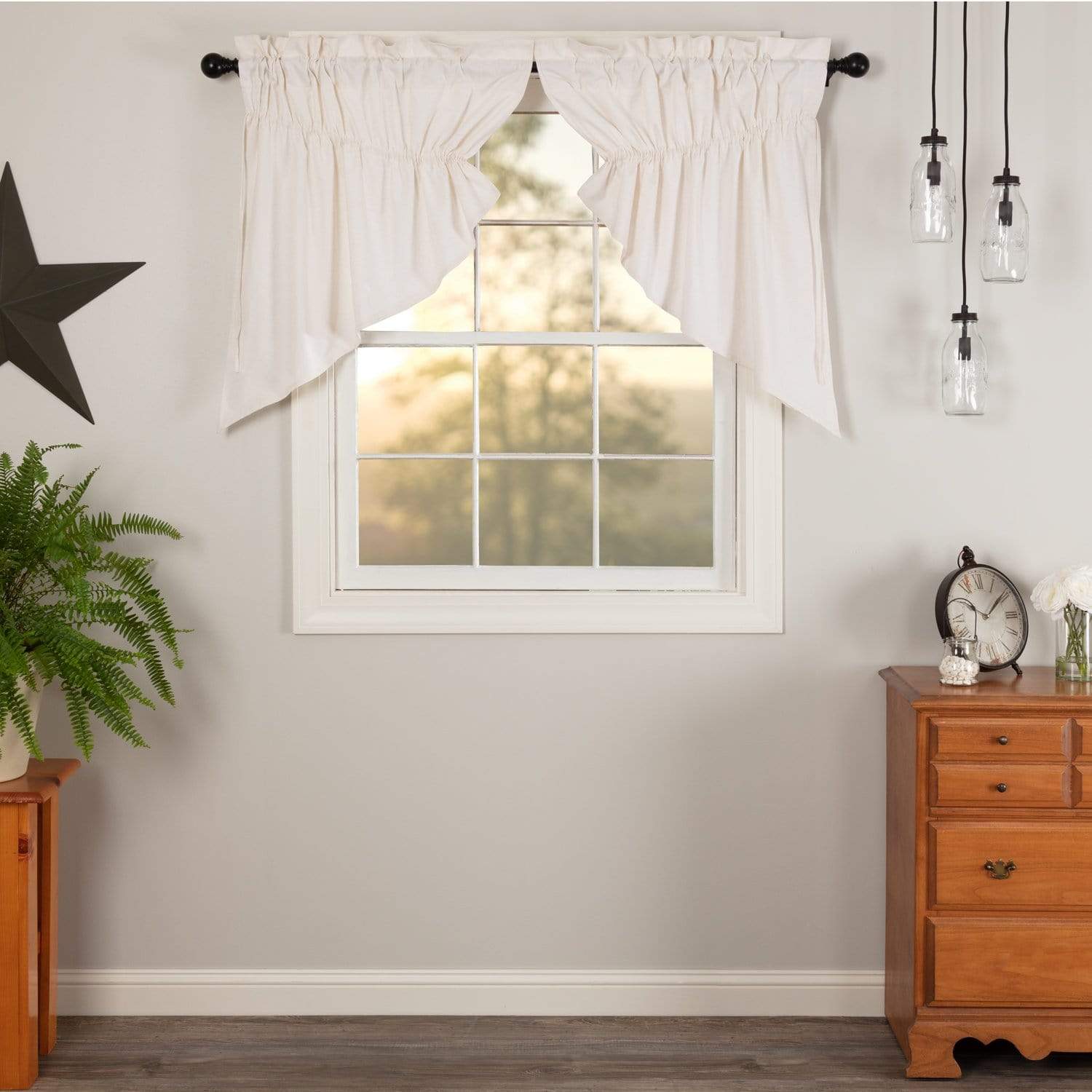 The Simple Life Flax Natural Prairie Swag Set showcases a classy, casual farmhouse look with our natural color cotton lined window treatment. Woven with cotton and linen flax for a natural textured look. Finished with dark thread to add subtle variation lined with white cotton to reduce fading and light penetration.