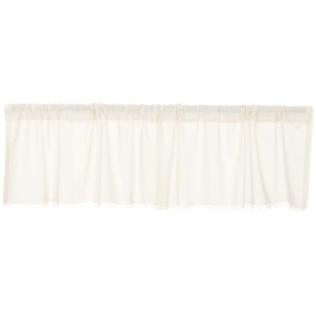The Tobacco Cloth Antique White Valance Fringed 16x72 brings a luxuriously upscale farmhouse look to your home or retreat. A lightweight antique white tobacco cloth drapes your window in sheer elegance with its soft and simple texture.